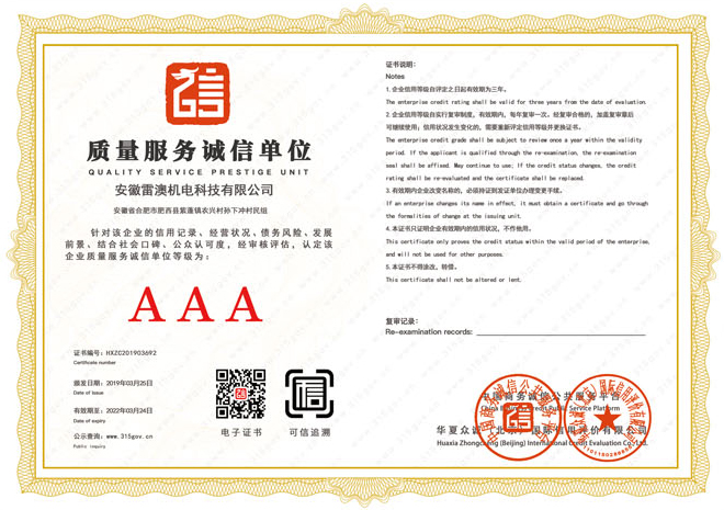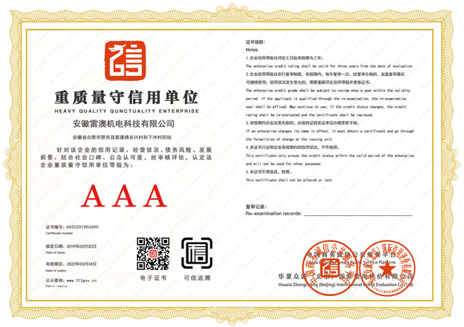 公司擁有專業的設計研發、生產、安裝團隊;安徽雷澳機電設備有限公司所有員工秉承竭力奉獻和努力創新的精神,追求卓越,不斷完善創新。立志使雷澳的品牌成為廣大用戶的放心選擇,您的滿意就是我們努力的目標。雷澳將品德與承諾作為公司的立身之本,本著互相學習,共同發展的經營理念,愿與您攜手共創更美好的明天。
